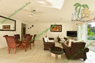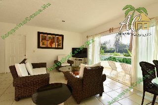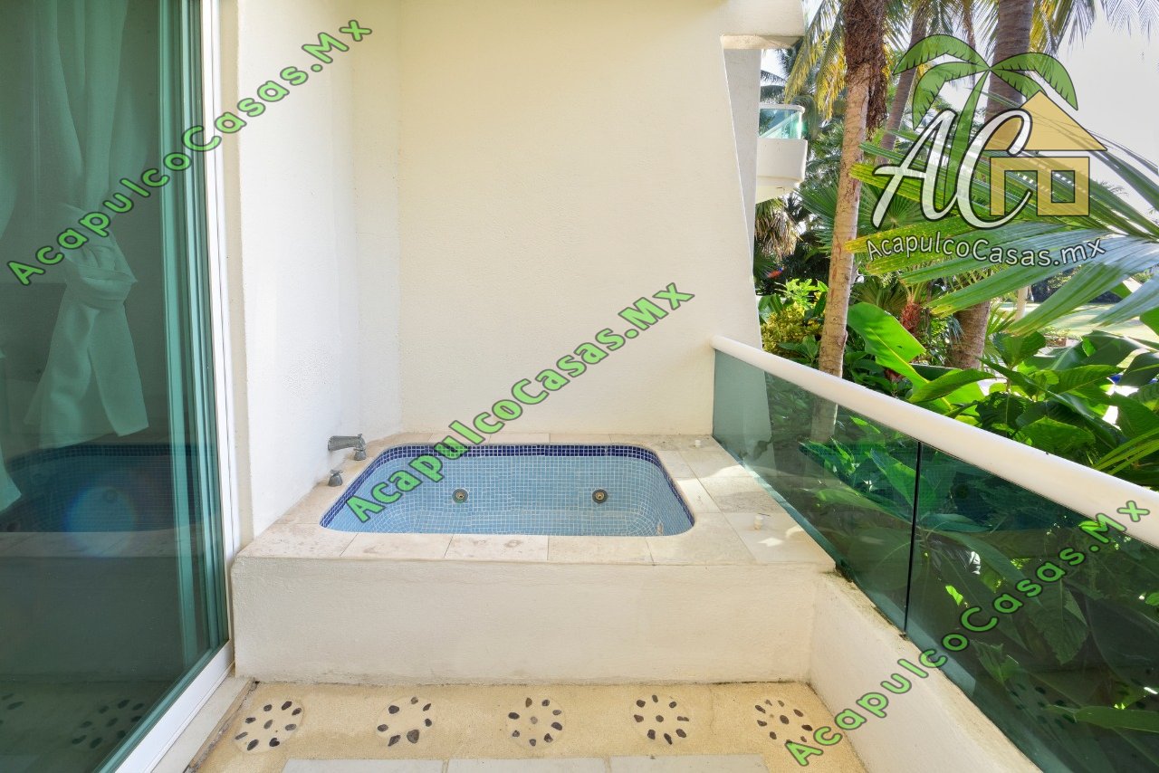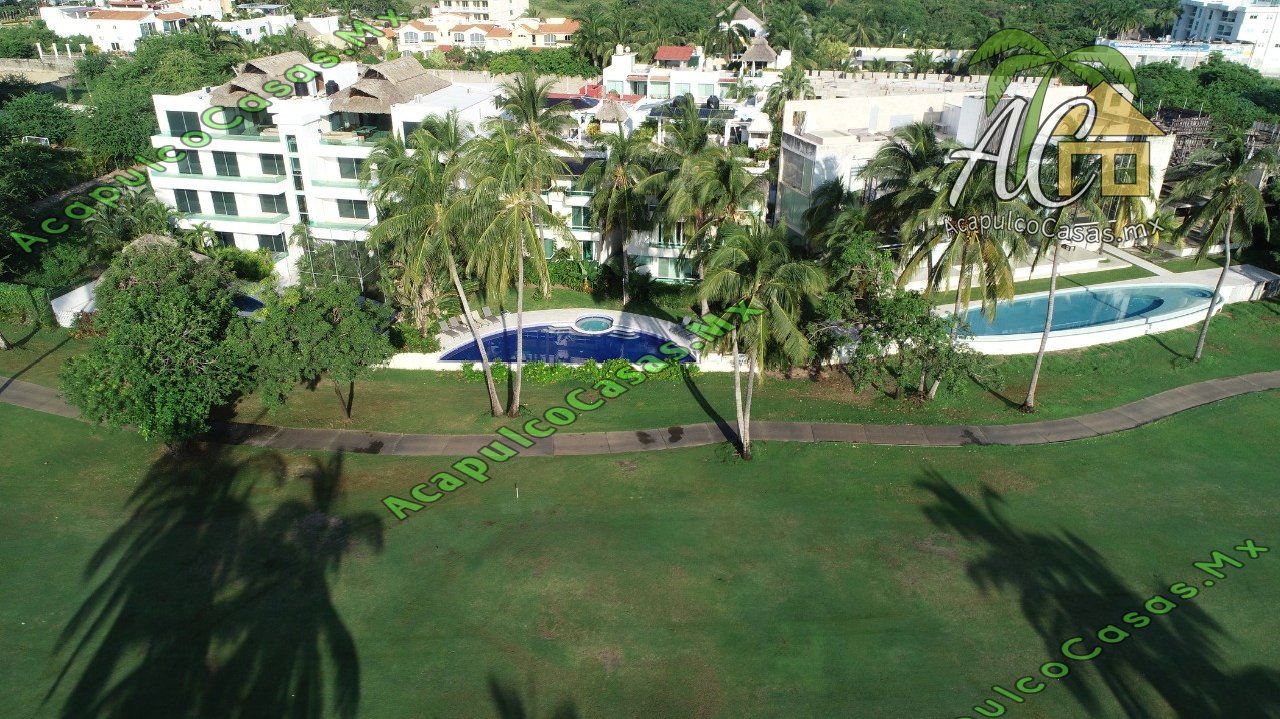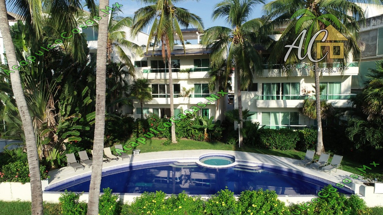 Sala, cocina equipada, TV, comedor. alberca común con camastros.